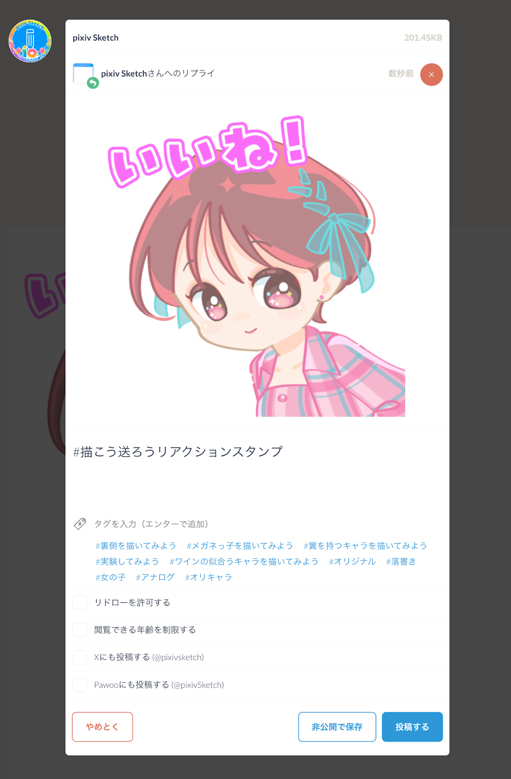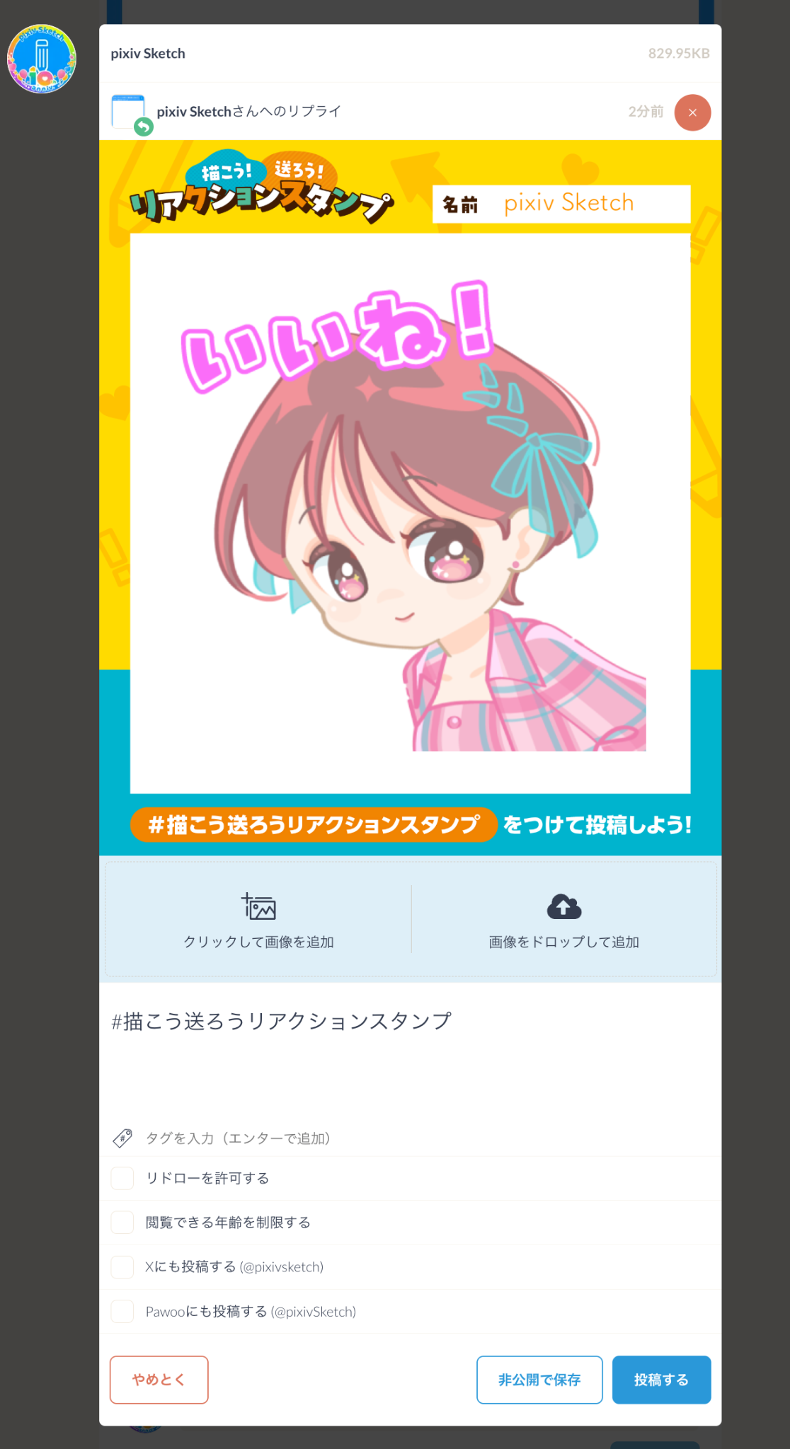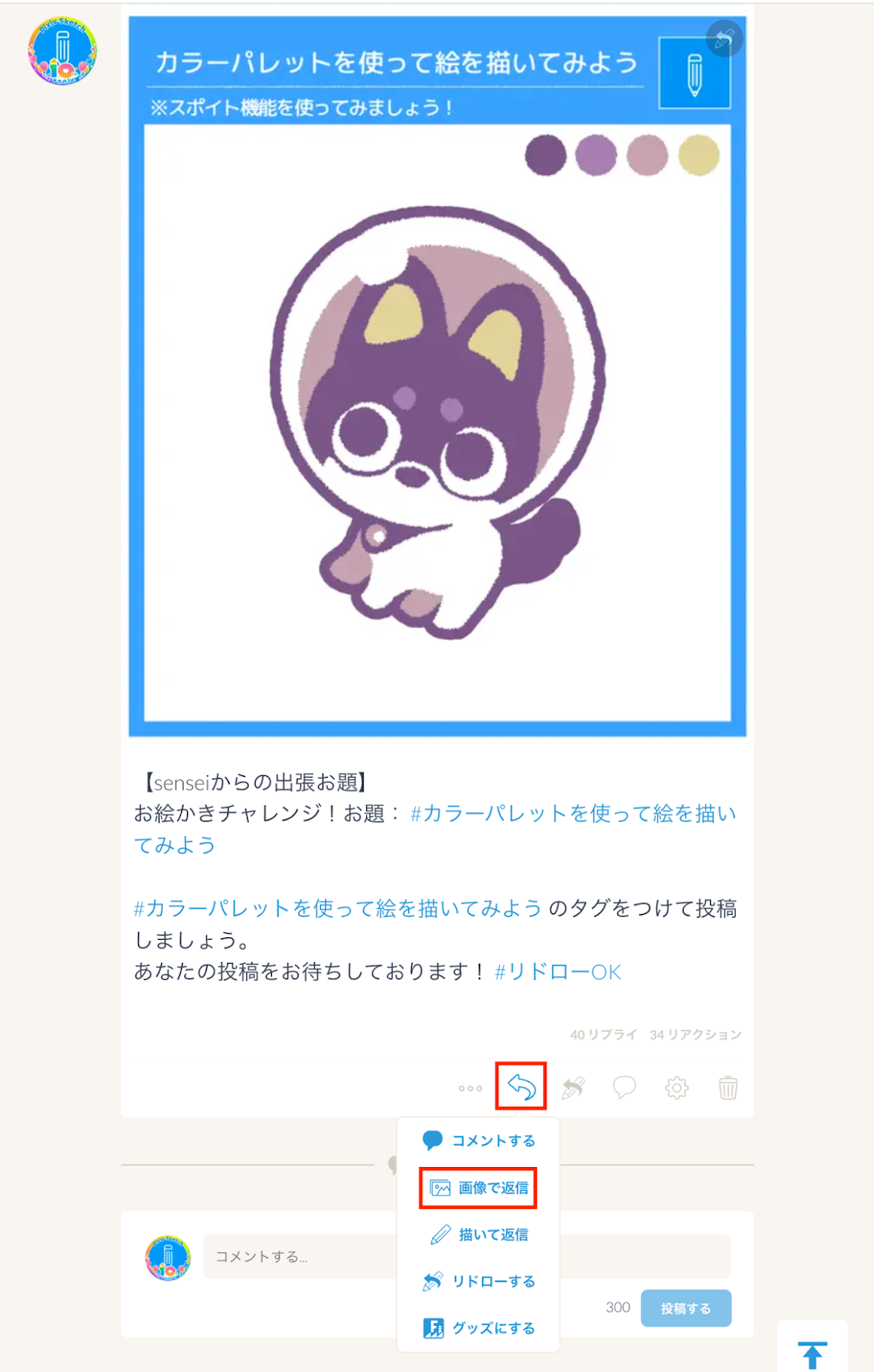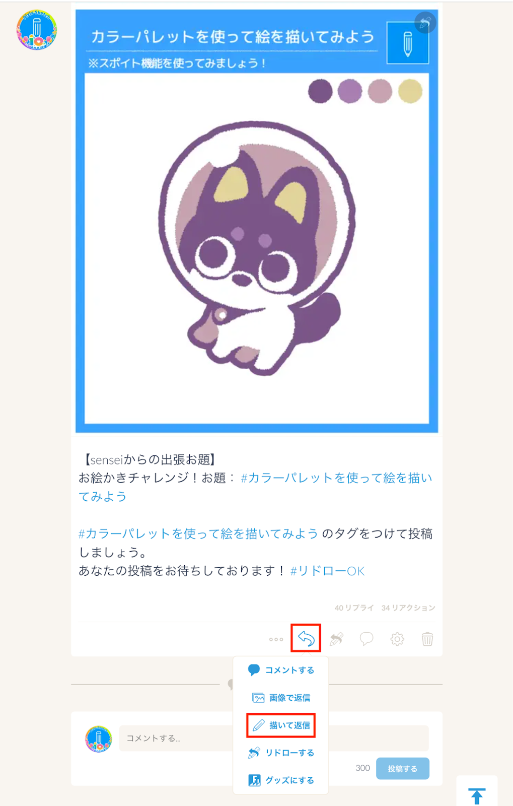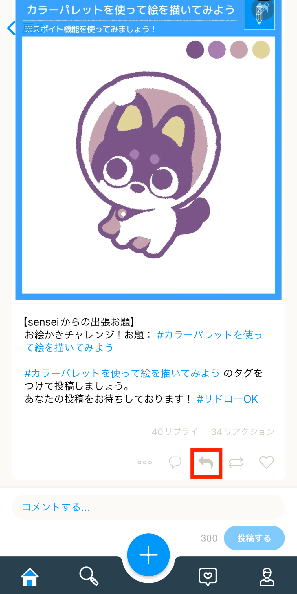 リプライには「画像で返信」「描いて返信」の2種類があります。