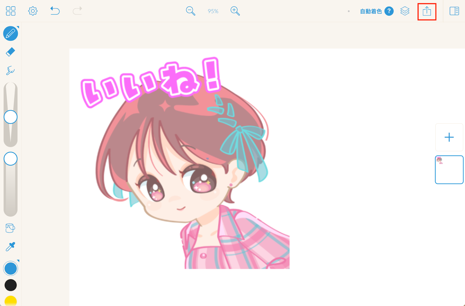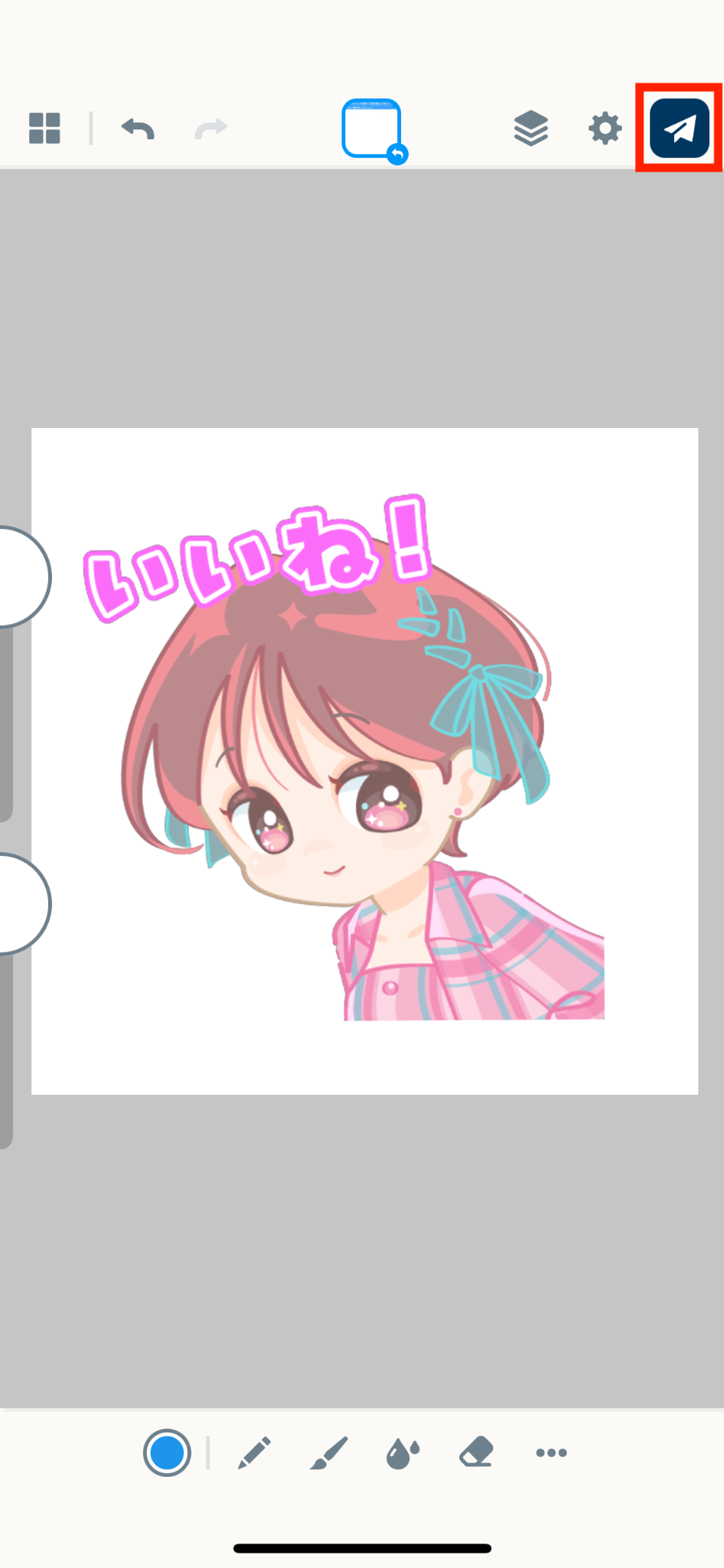 - ドロー機能で送りたいイラストを描き、画面右上のをクリックする。